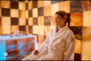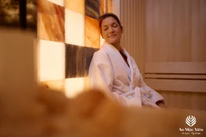 Trong không gian đá muối ấm, mồ hôi tiết ra chậm và đều. Đó không...