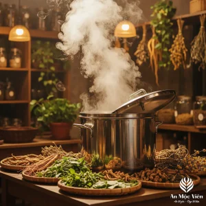 Không vội. Không mạnh lửa. Lá thuốc được nấu đúng thời gian để giữ trọn...